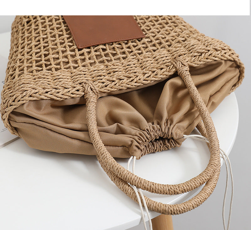 Niche Thailand Straw Bag Retro One Shoulder Portable Hollow Out Cutout Woven Bag Women Seaside Vacation Beach Bag