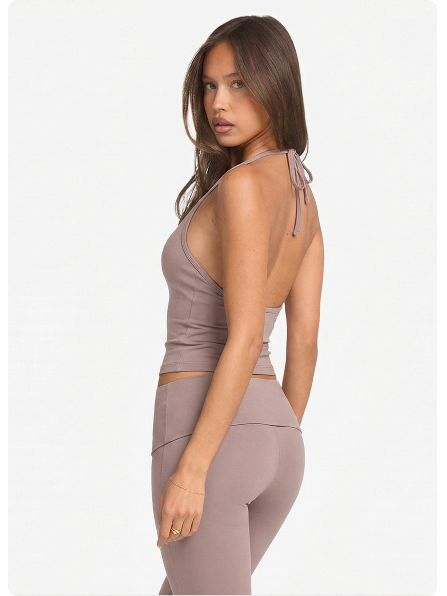 Nude Feel Skin Friendly Halter Spaghetti Straps Bootcut Trousers High Waist Flanging Thin Yoga Pants Two Piece Sets The size is a bit small
