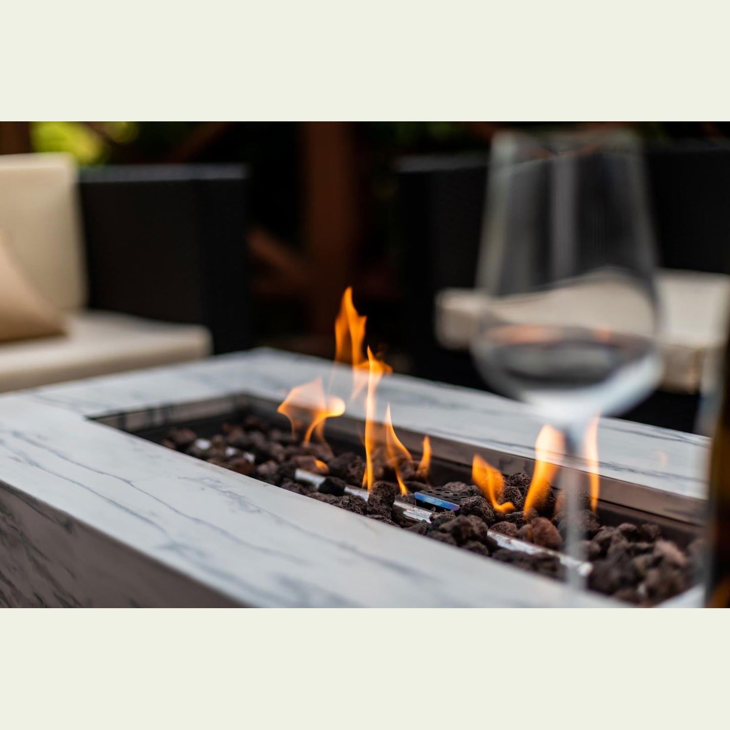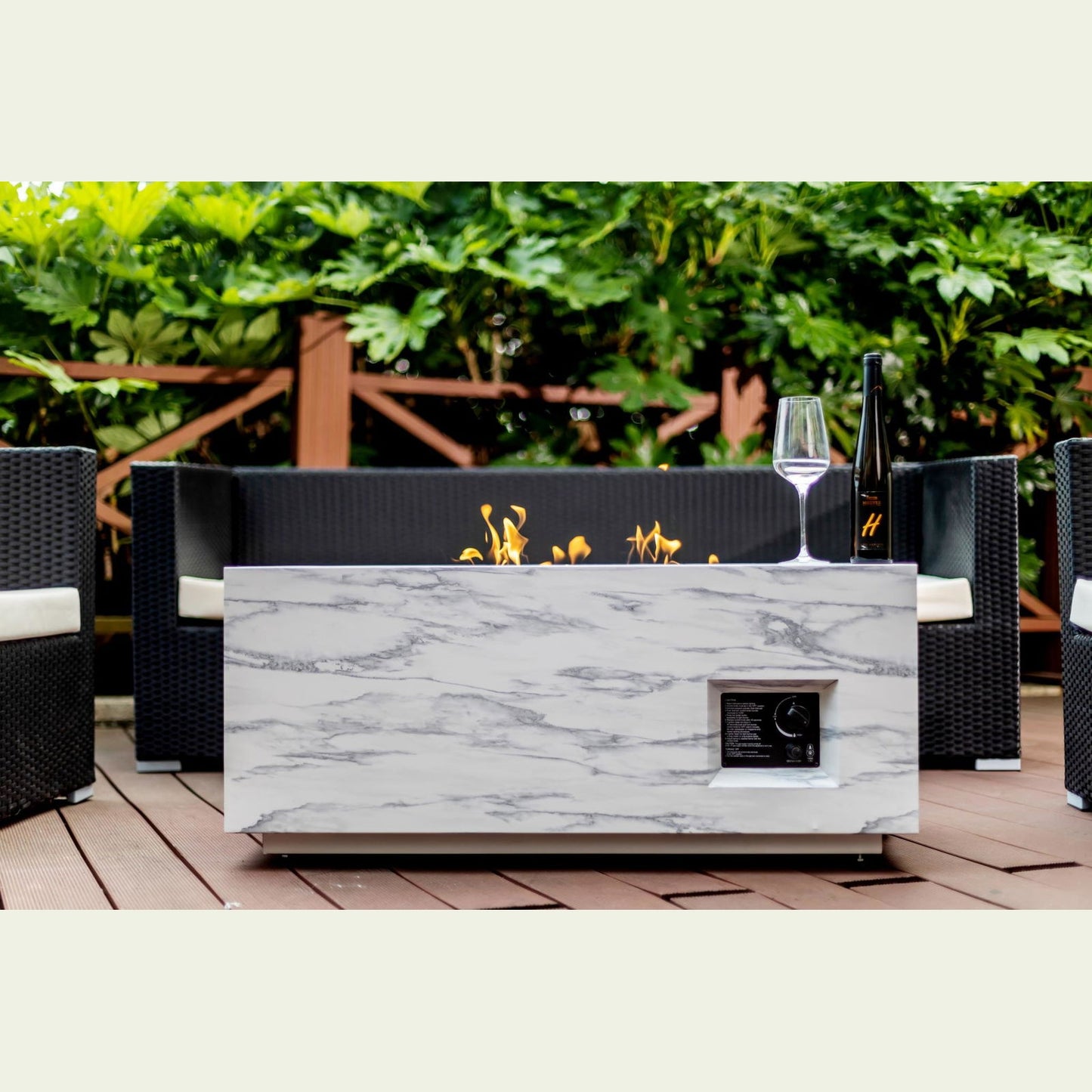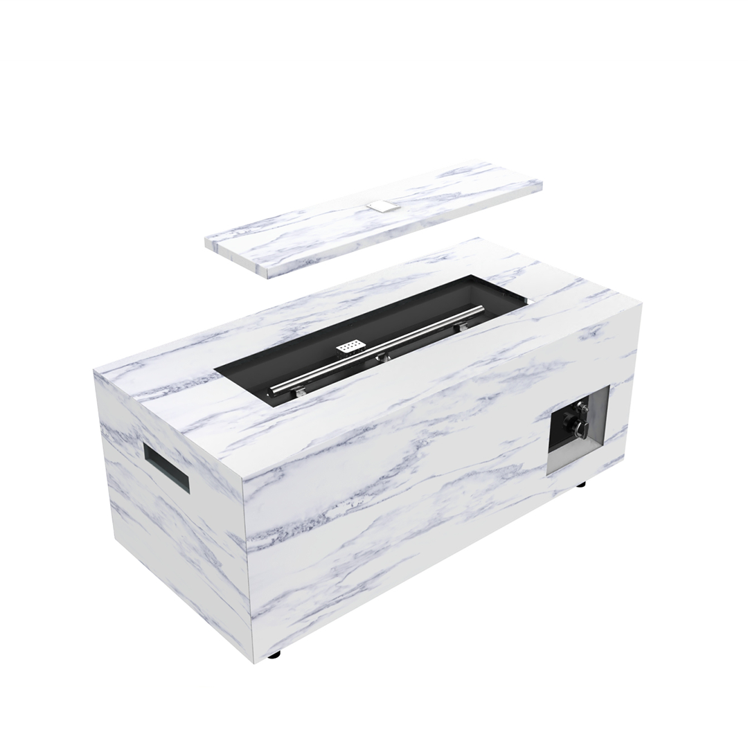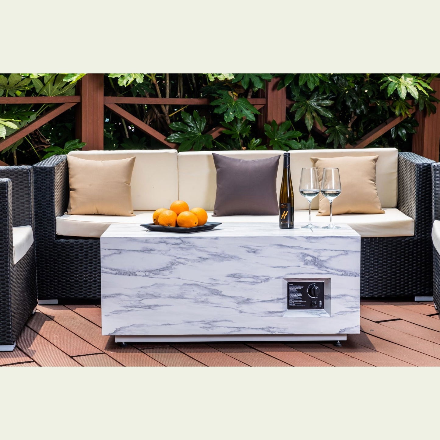 Create an inviting outdoor Paradise for family and friends with this 42in 50000BTU Gas rectangle fire pit table. It features a modern and concise design that adds a unique touch of beauty while Adding warmth and a relaxing ambiance for garden, terrace, balcony, patio, deck, or backyard.The appearance is integrated with the environment, is a product perfect for furniture design.