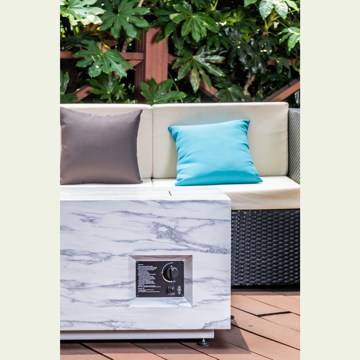 Outdoor 50,000BTU Rectangle Propane Fire Pit Table, Light Grey concrete style finish gas fire Pit