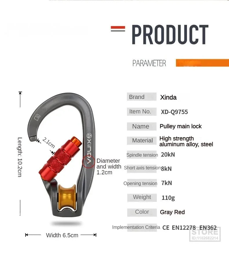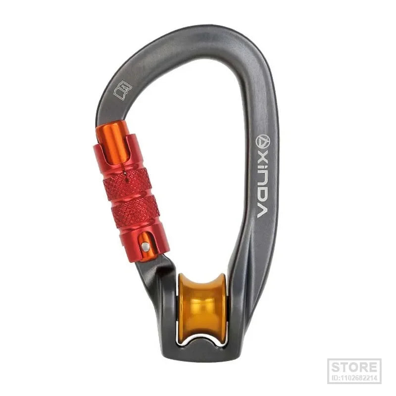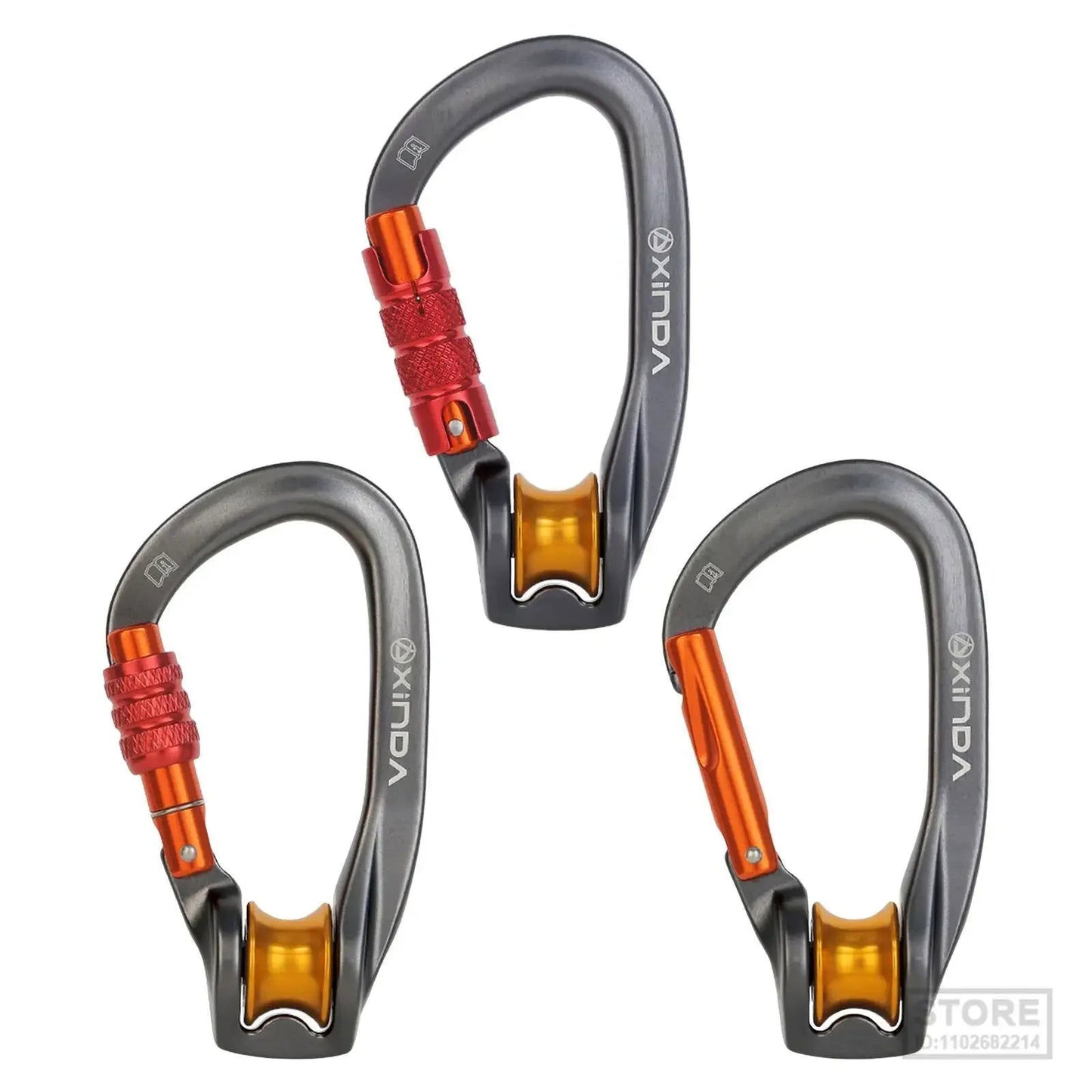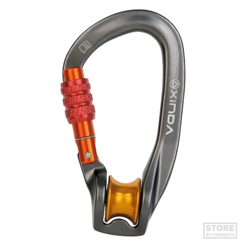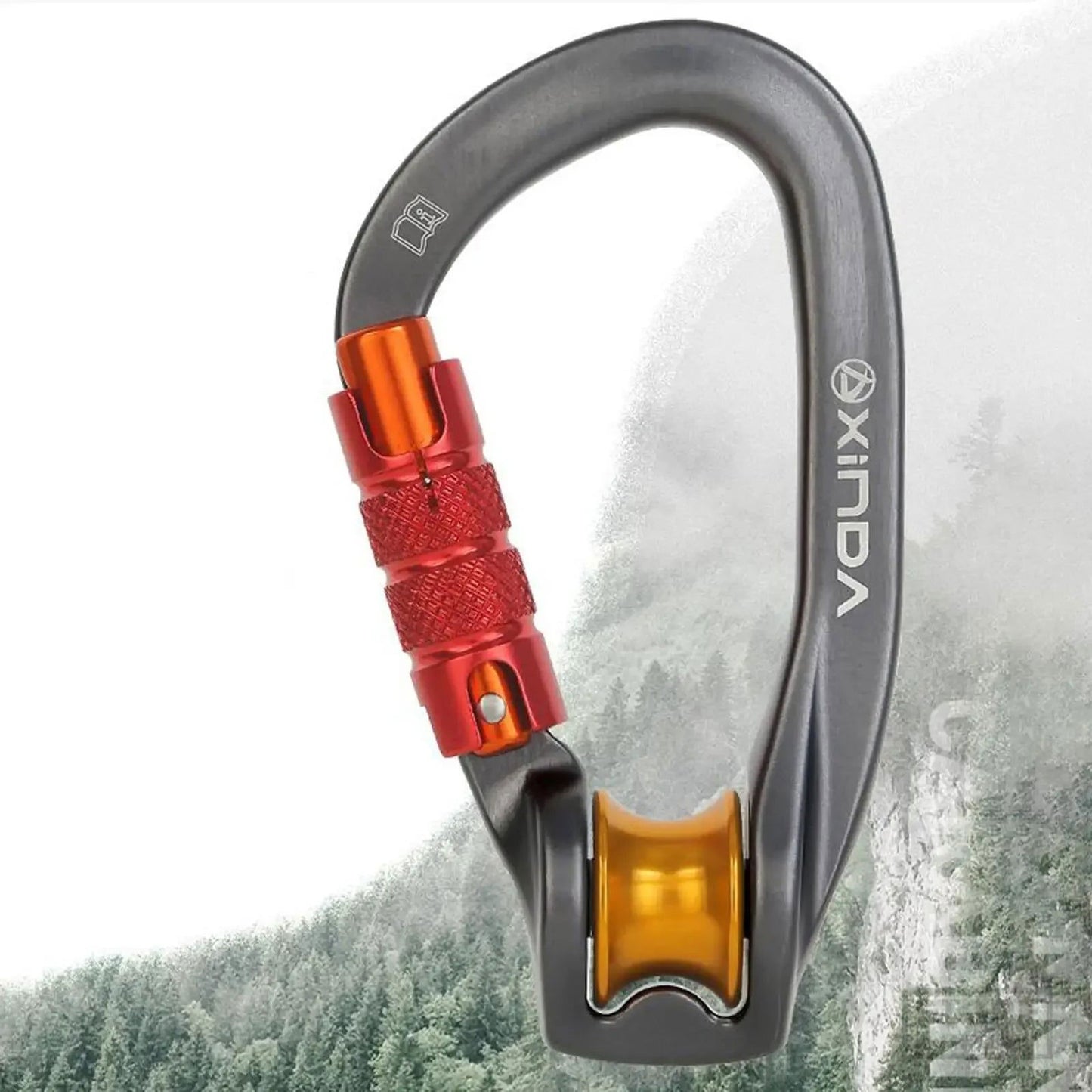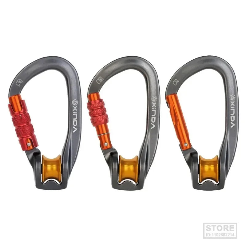 Outdoor Pulley Carabiner Mountaineering Safety Buckle Lock Cross Strop Equipment Bearing Pulley Hook