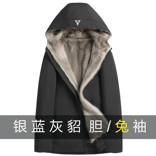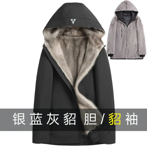Parka Men's Real Fur Marten Overcoats Mink Liner Nick Garment Short Fur Coat Whole Mink Wool mens mink coat