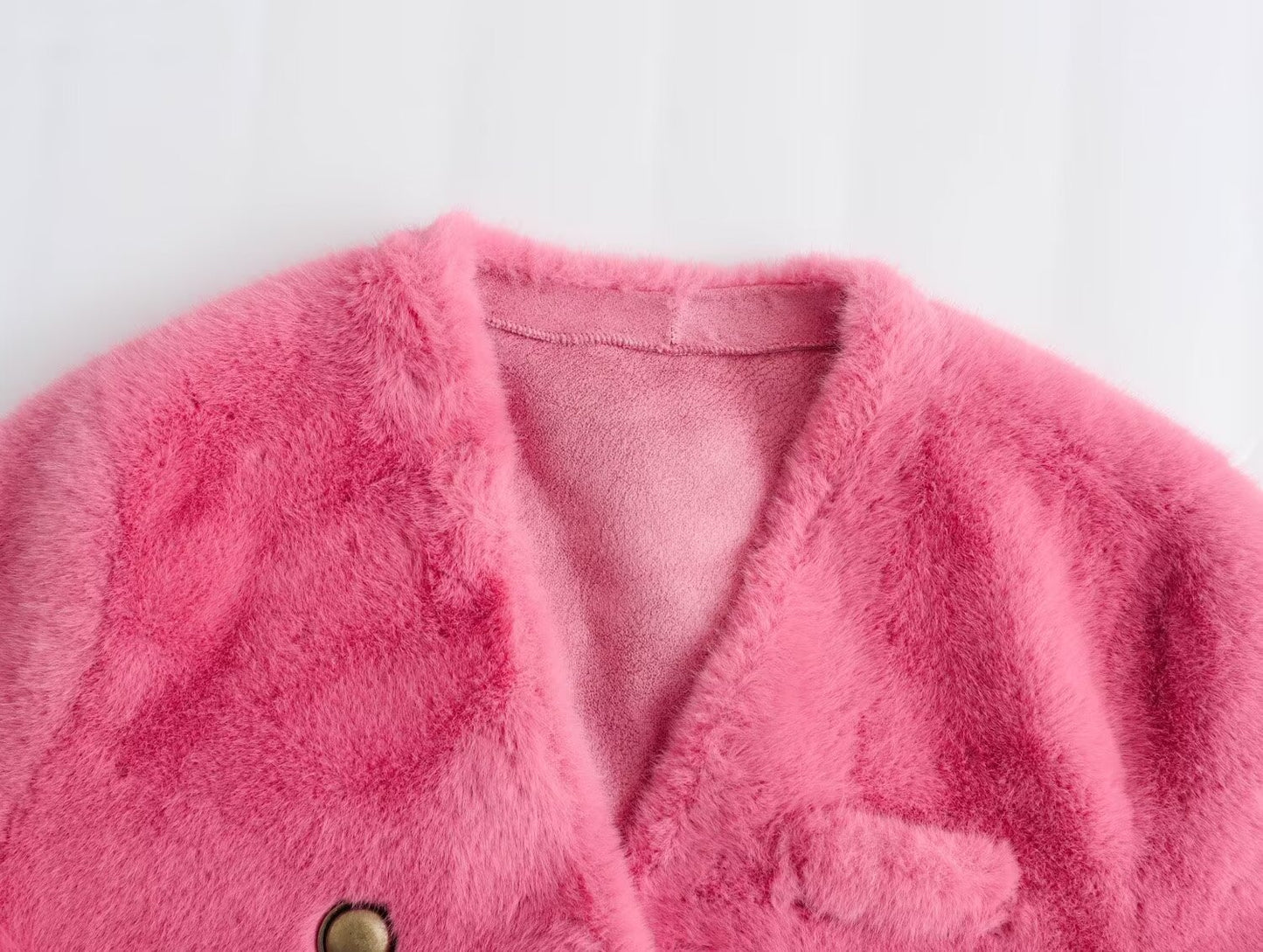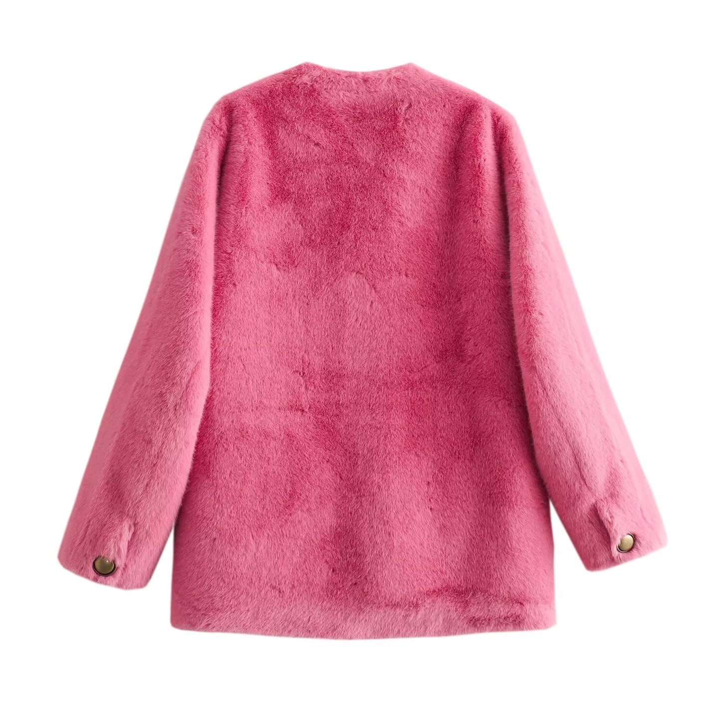 Winter Women Clothing Mink like Faux Shearling Jacket V neck Long Coat