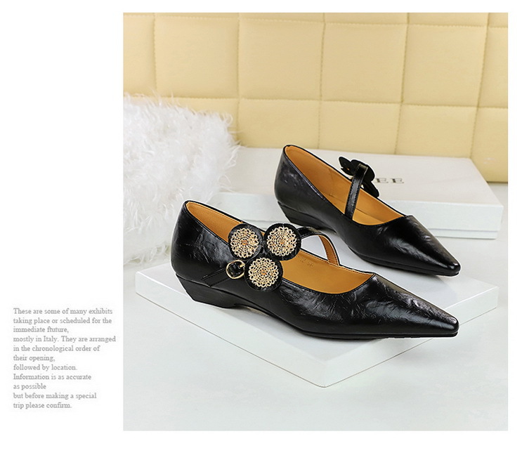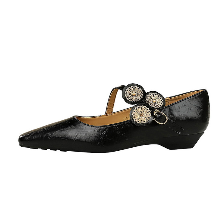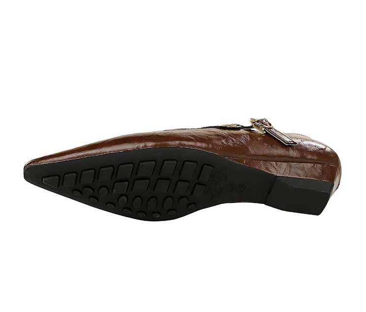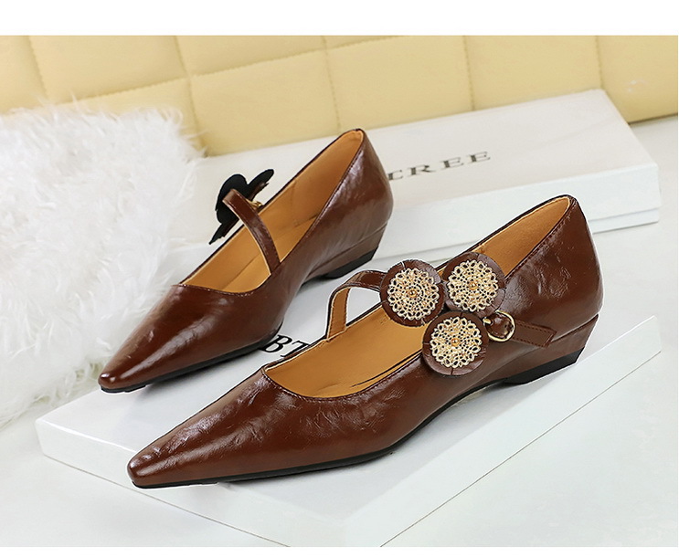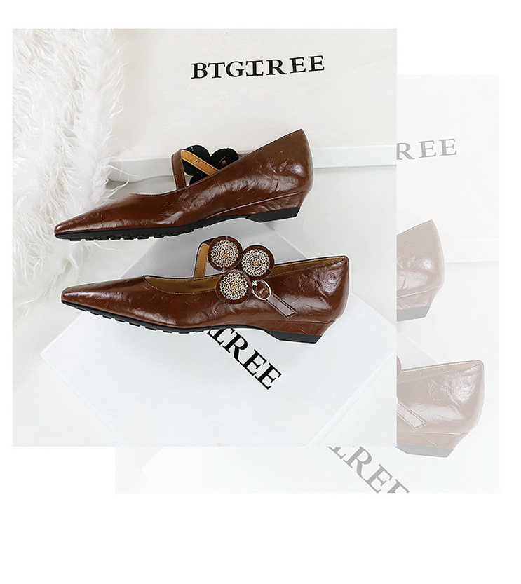Women Single Layer Shoes Metal Decoration Shallow Mouth Pointed Toe Wedge Low Heel Shoes Pumps