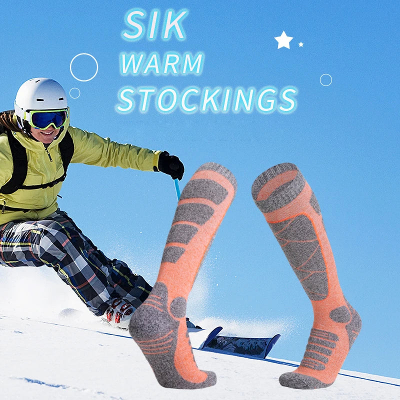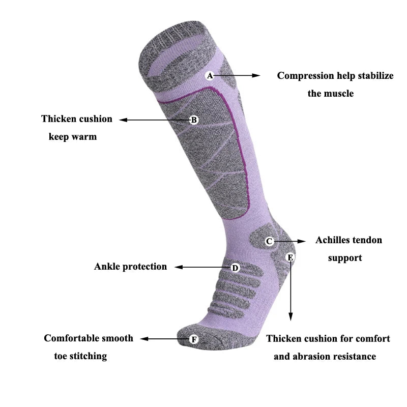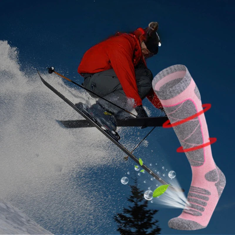Women Ski Socks Long Thickened Cushion Towel Breathable Sweat-absorbing Keep Warm Outdoor Sports Mountaineering Snowboard Socks