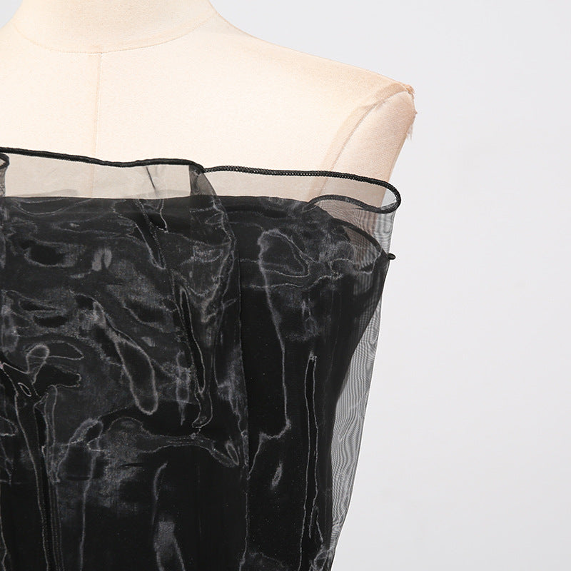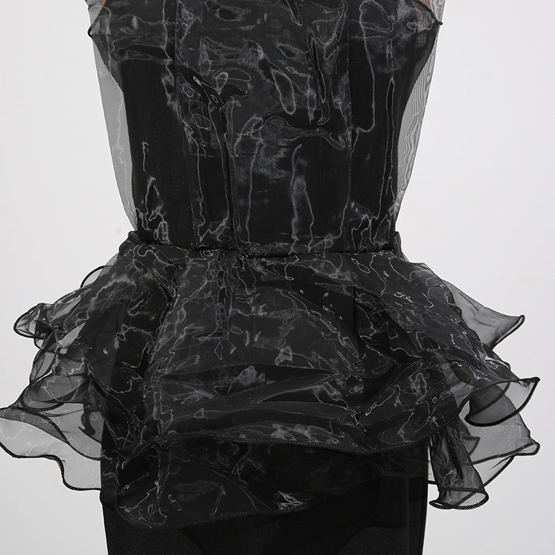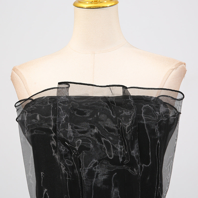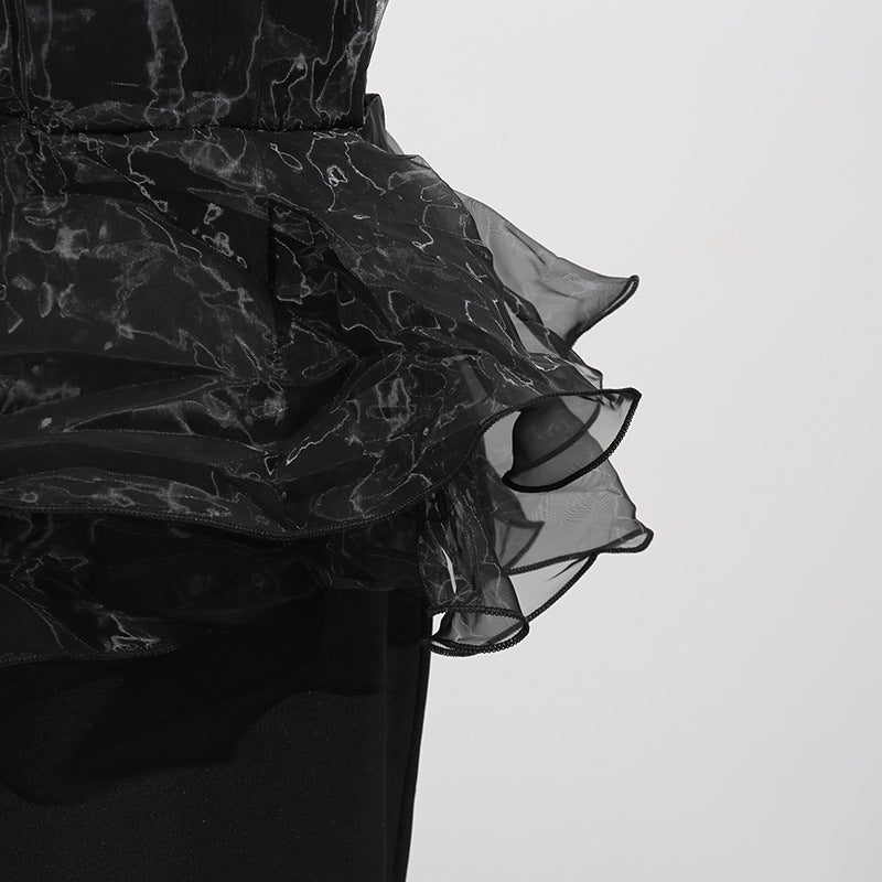 Women Stitching Mesh Design High Waist Sheath Maxi Dress